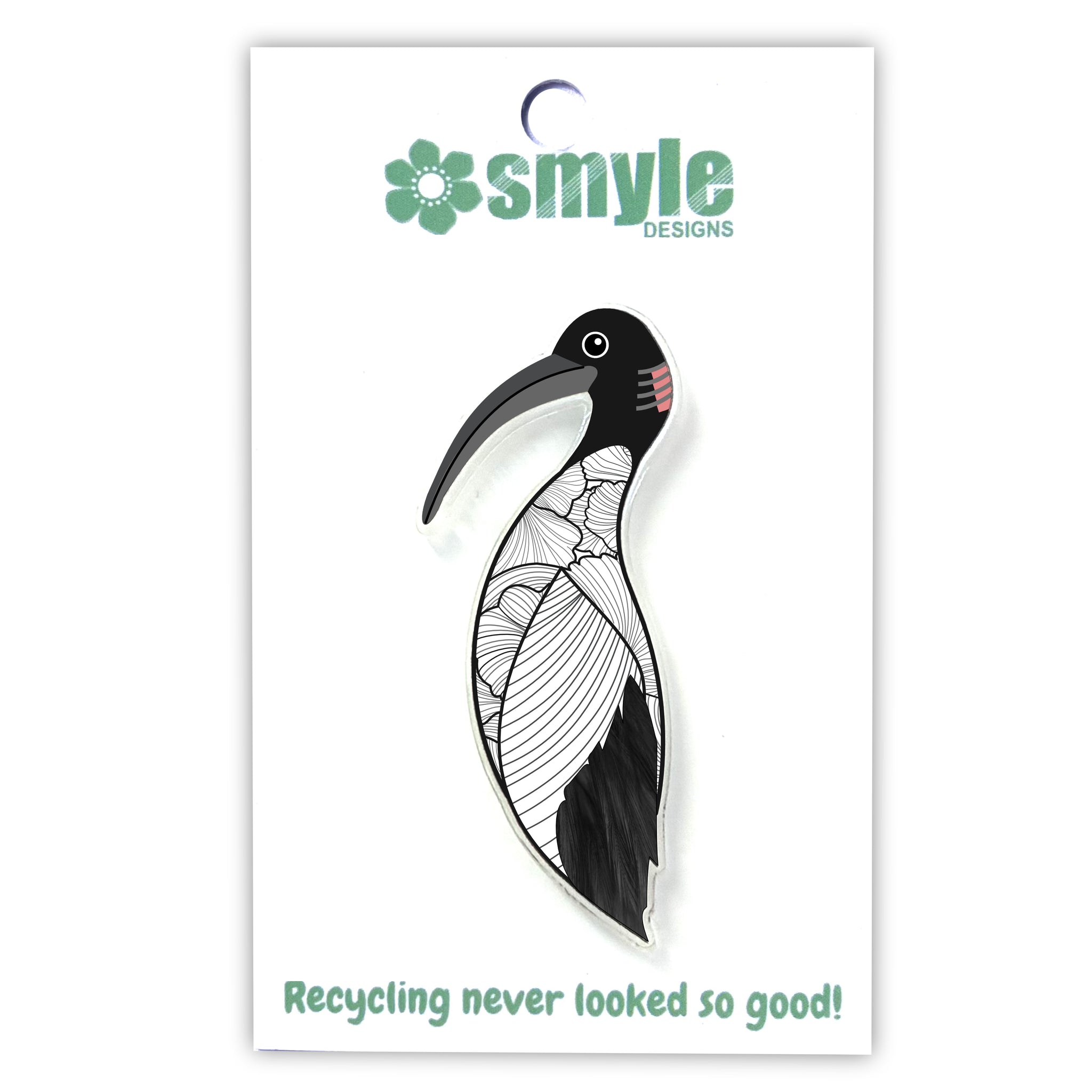 Our Ibis pins began as an illustration in our home studio and have been thoughtfully transformed into beautiful pins using recycled plastics - right here in Brisbane, Australia.