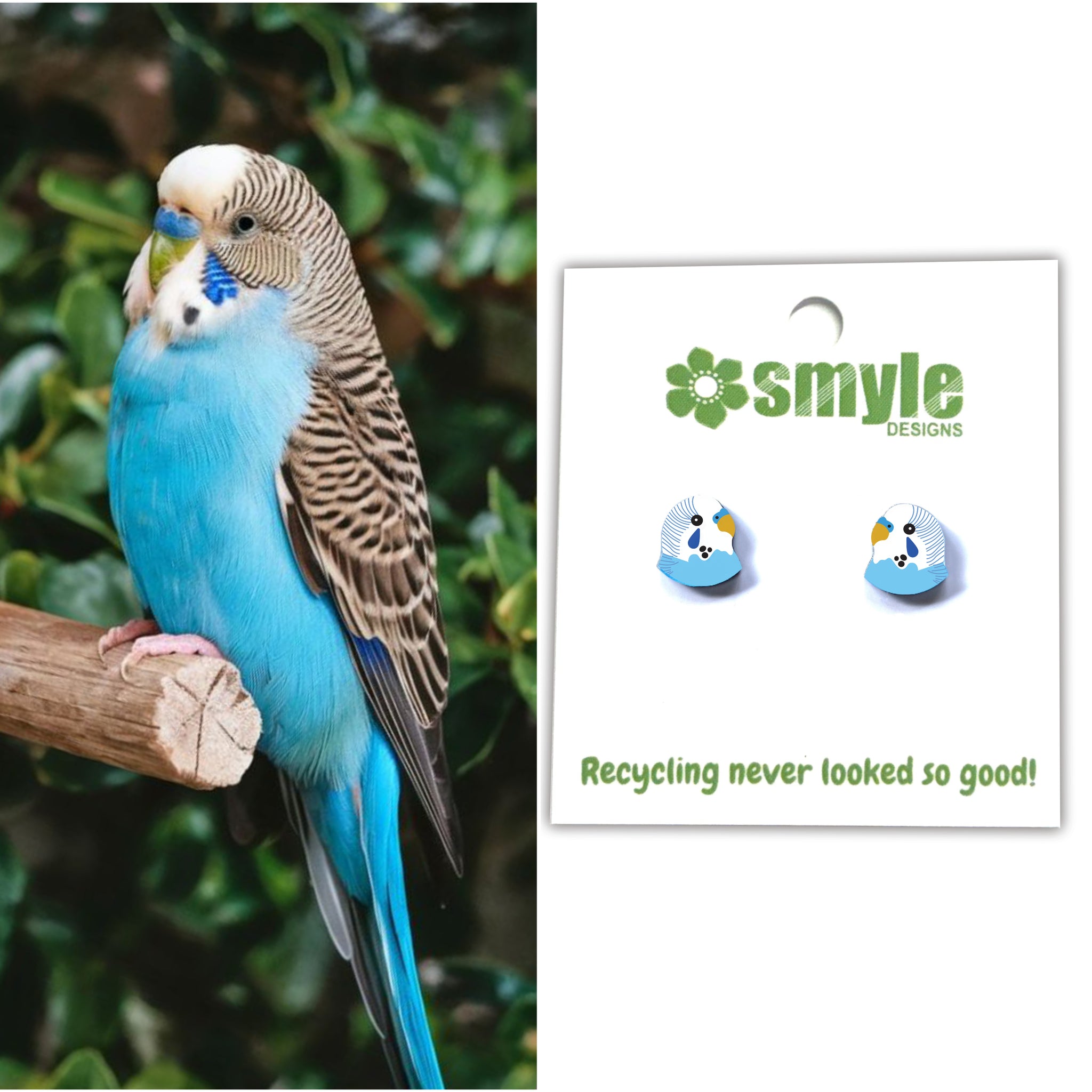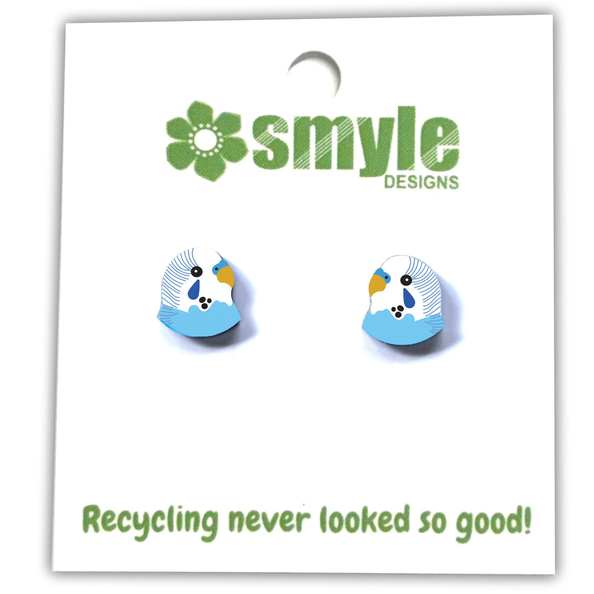 Our Budgie earrings began as an original illustration in our home studio and have been thoughtfully transformed into lightweight earrings using recycled plastics - right here in Brisbane, Australia.