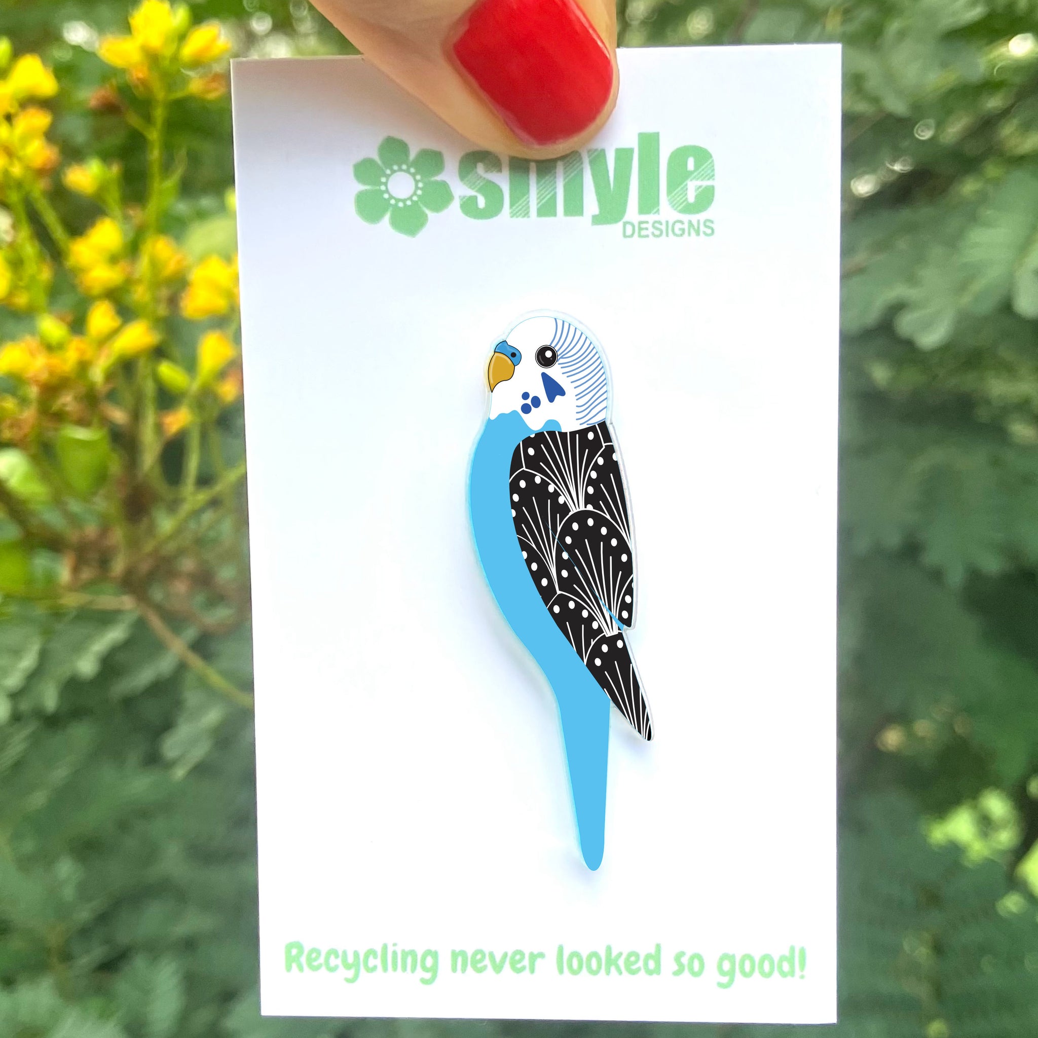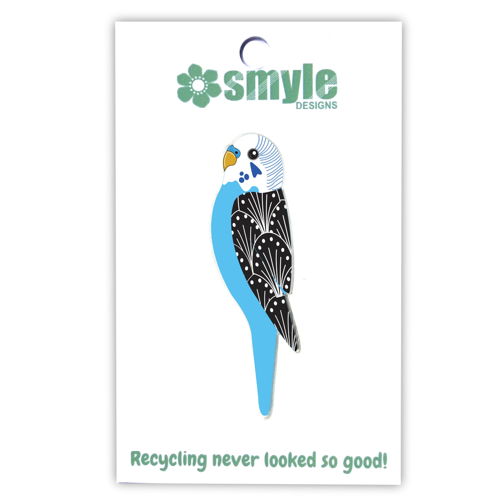 Our Budgie pins began as an original illustration in our home studio and have been thoughtfully transformed into beautiful pins using recycled plastics - right here in Brisbane, Australia.
