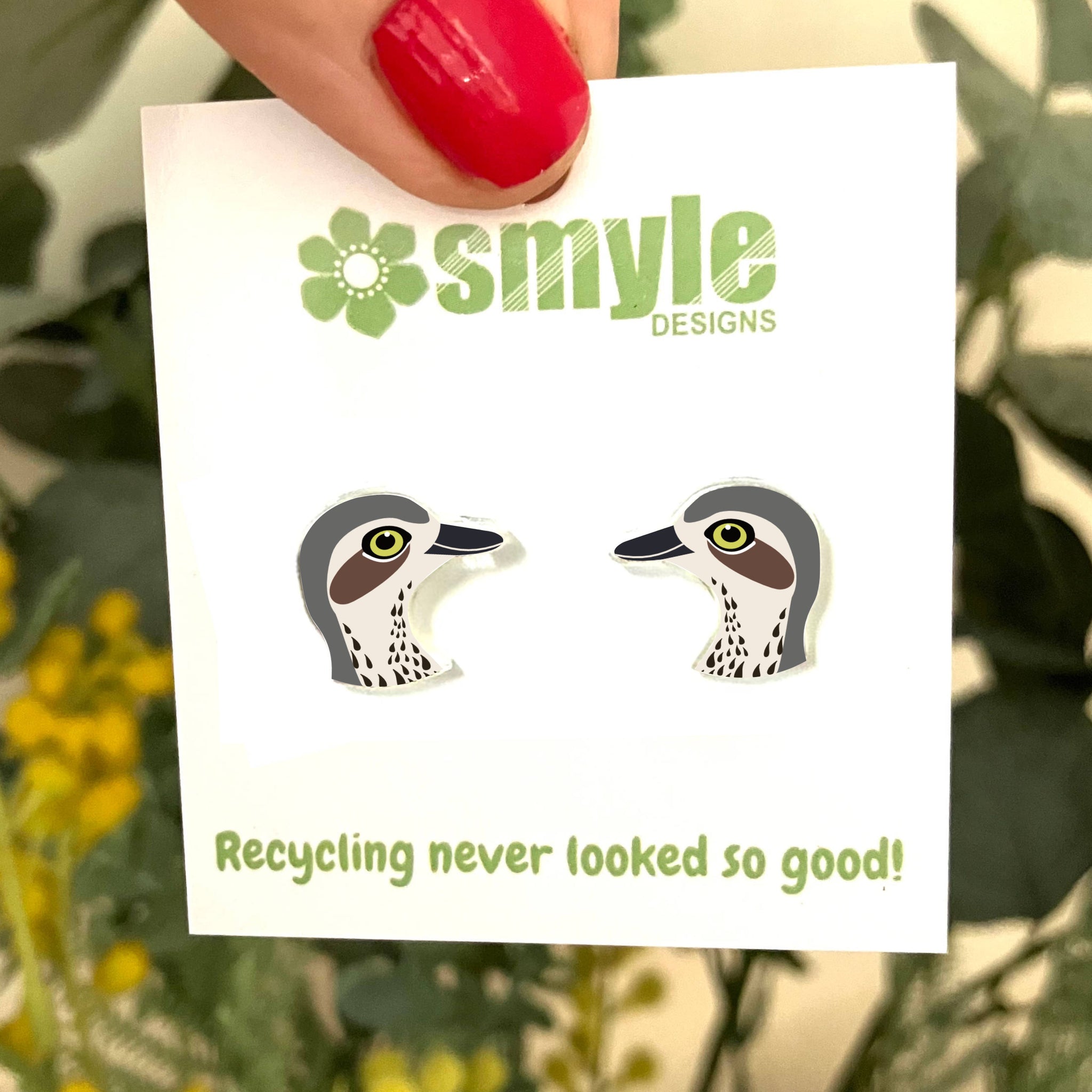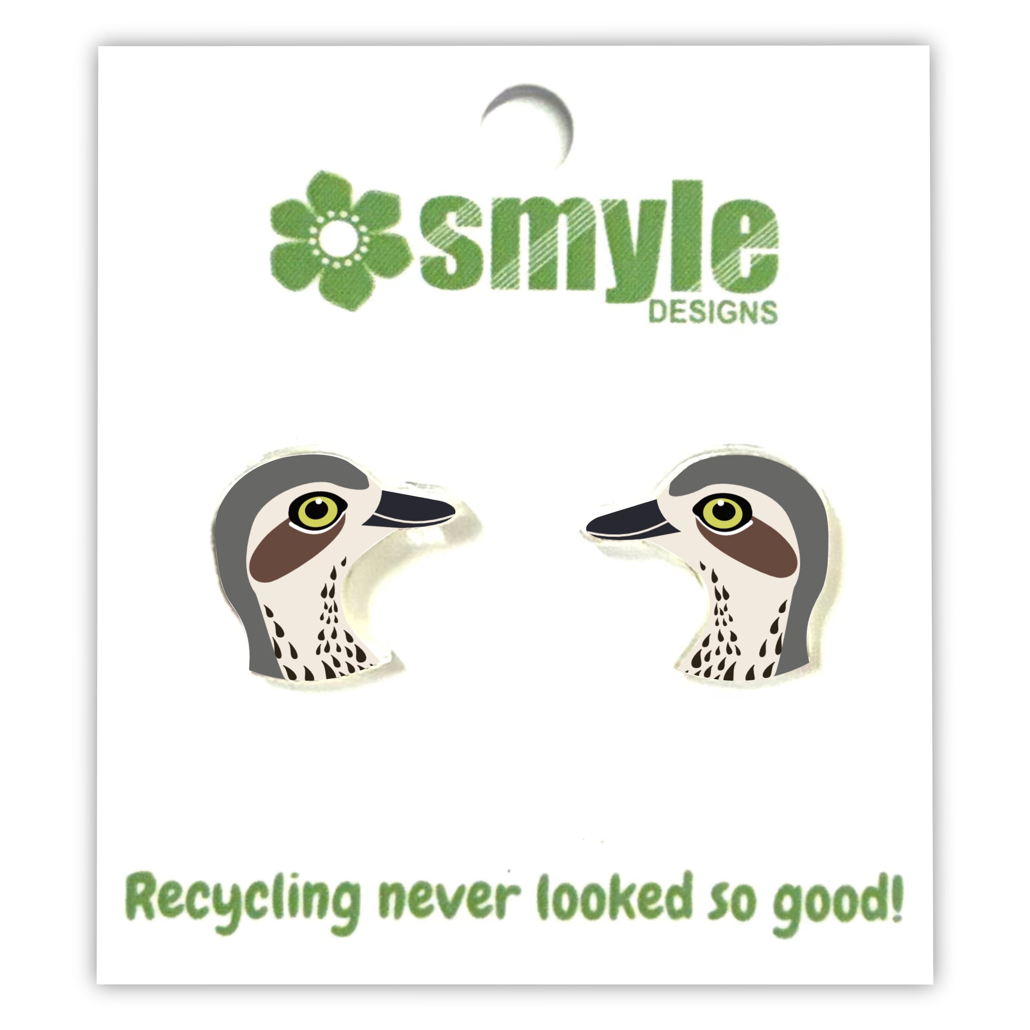 Our Bush Stone Curlew earrings began as an original illustration in our home studio and have been thoughtfully transformed into lightweight earrings using recycled plastics - right here in Brisbane, Australia.