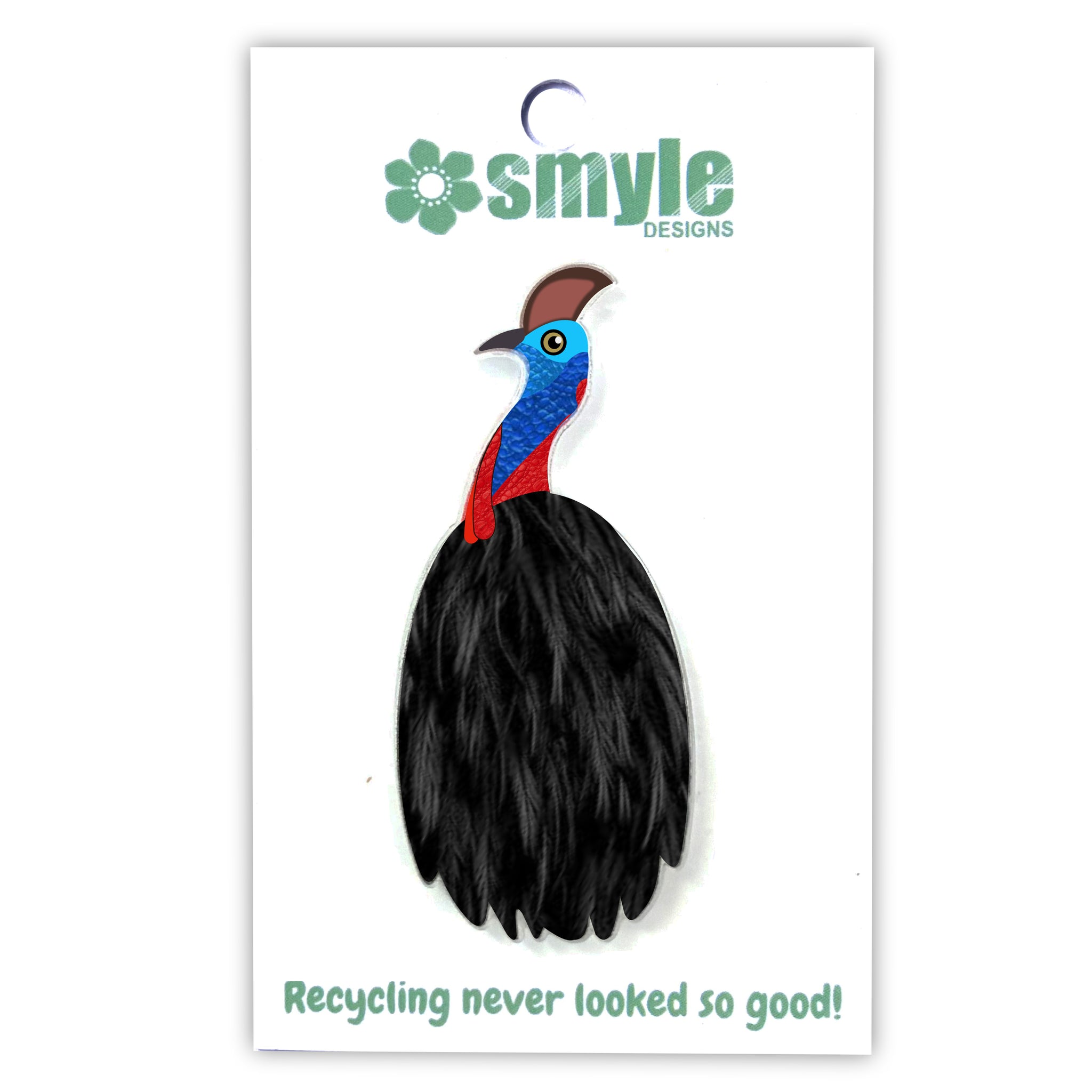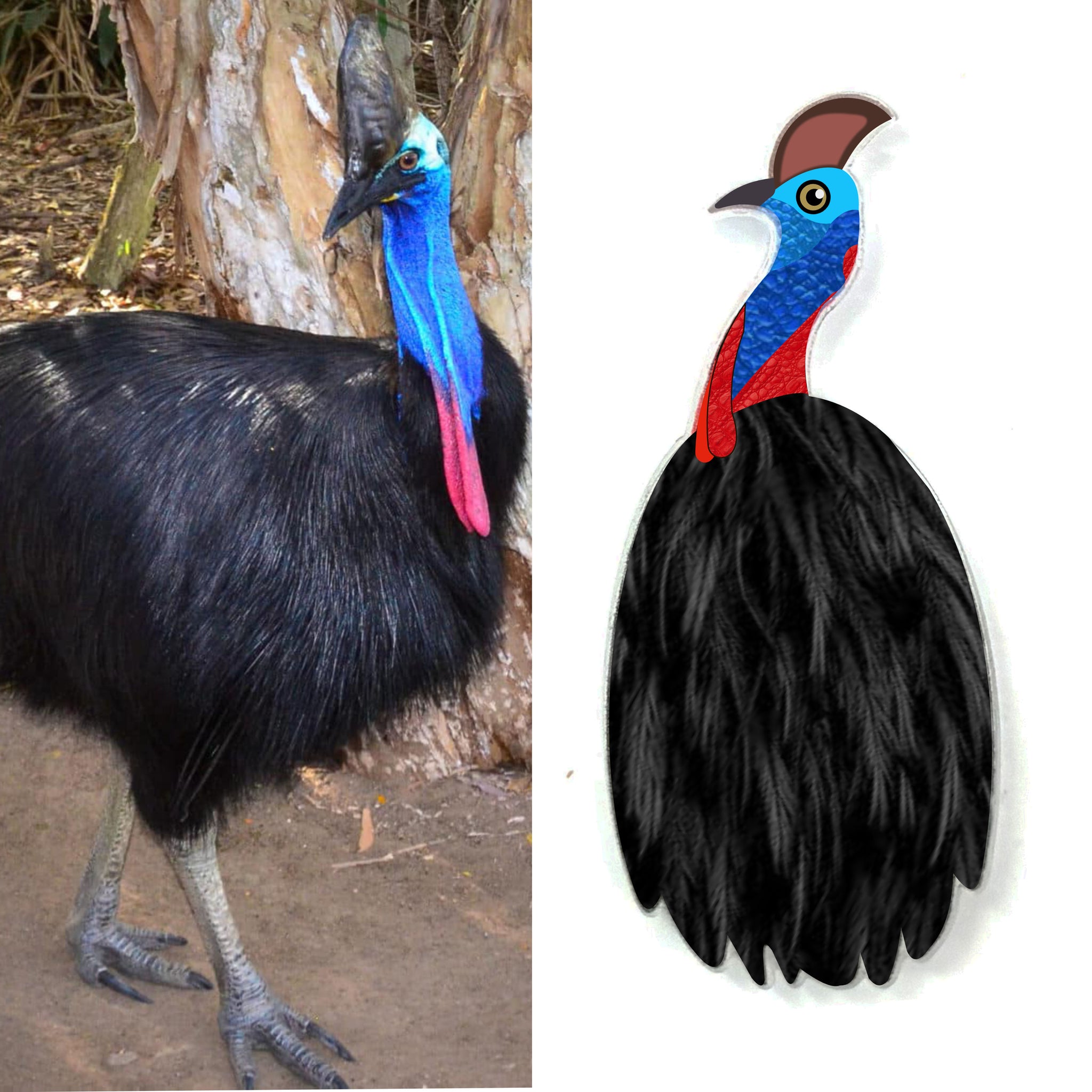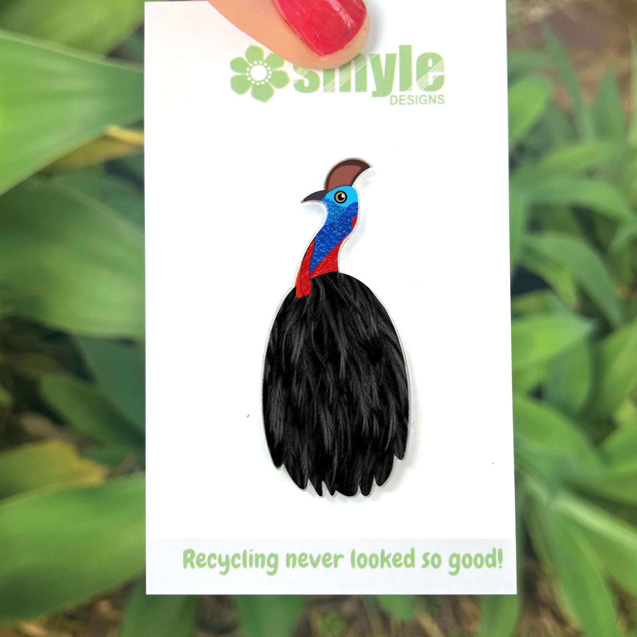 Our Cassowary pins began as an original illustration in our home studio and have been thoughtfully transformed into beautiful pins using recycled plastics - right here in Brisbane, Australia.