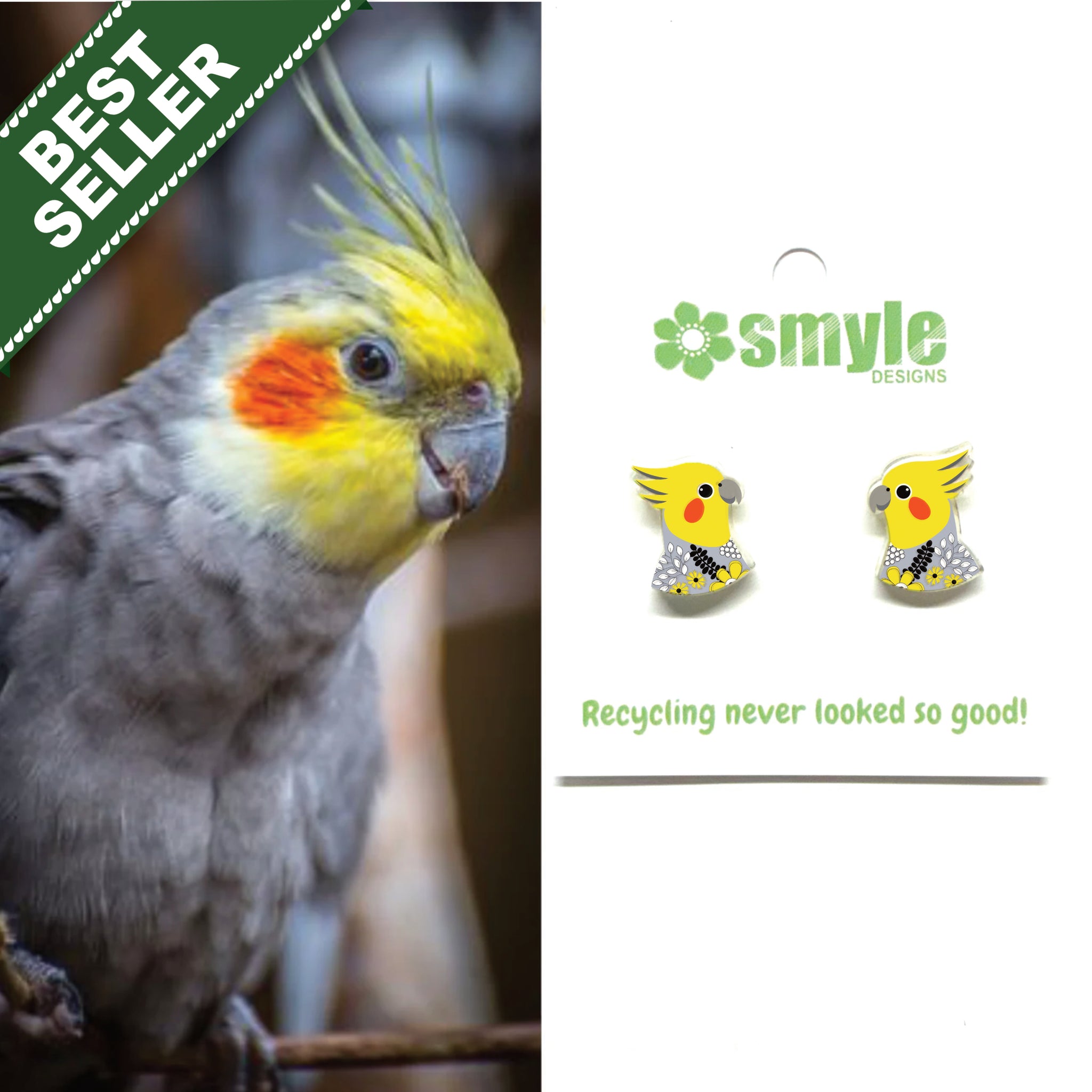 Our Cockatiel earrings began as an original illustration in our home studio and have been thoughtfully transformed into lightweight earrings using recycled plastics - right here in Brisbane, Australia.