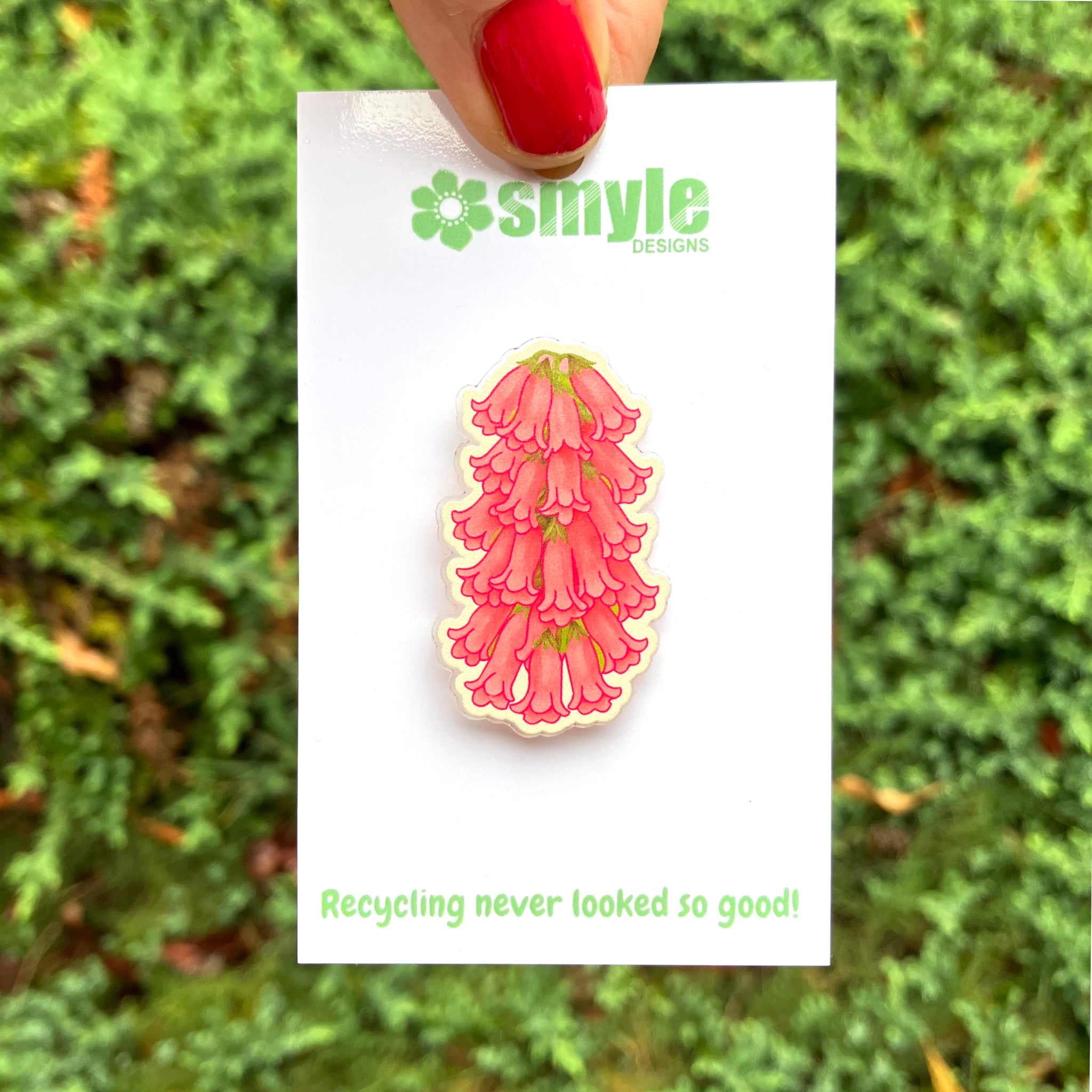 Our pin captures its delicate pink blooms in full colour, illustrated by Kylie and Matt and printed on recycled plastics right here in Brisbane.