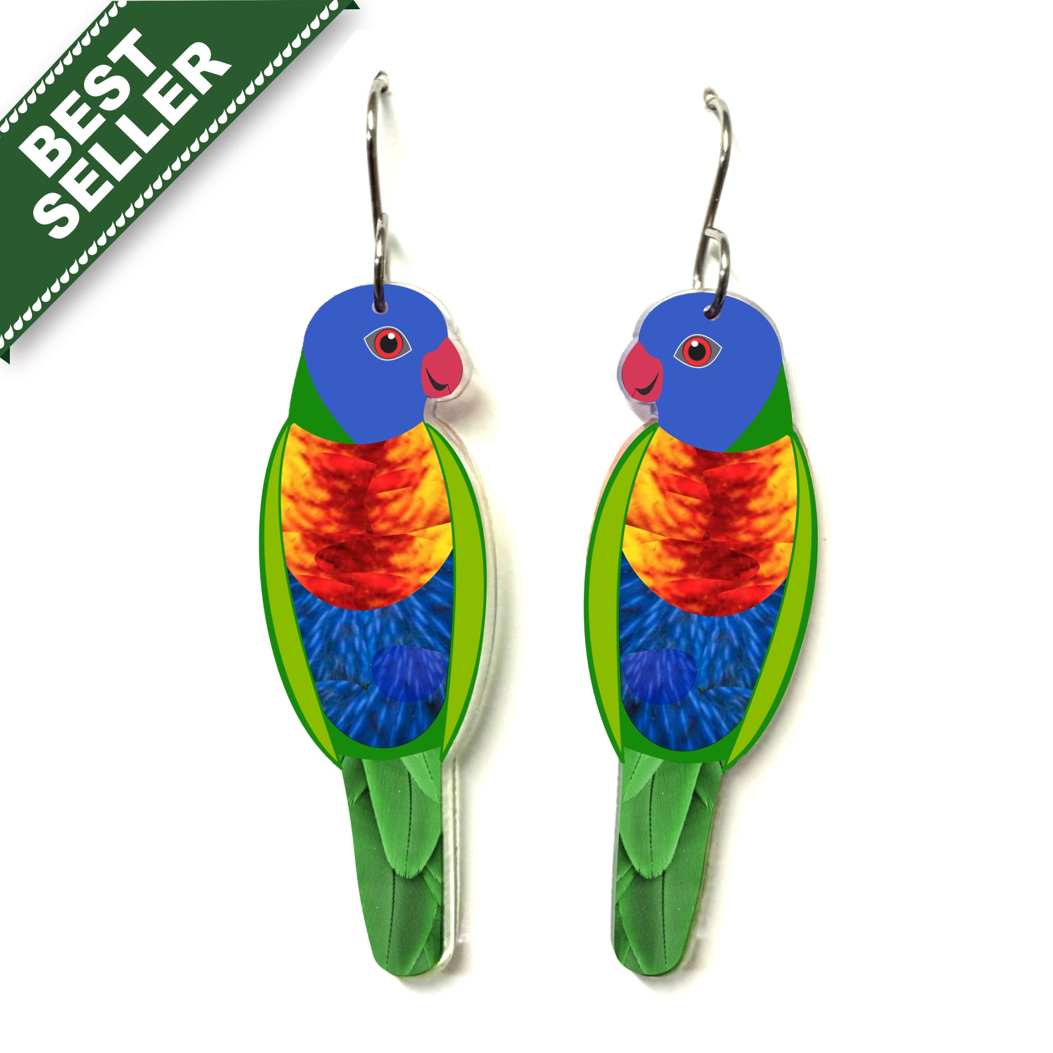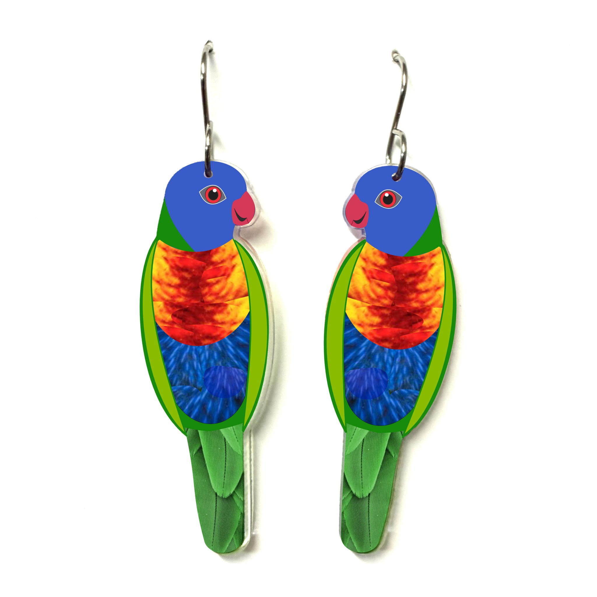 Our Rainbow Lorikeet earrings began as an original illustration in our home studio and have been thoughtfully transformed into lightweight earrings using recycled plastics - right here in Brisbane, Australia.