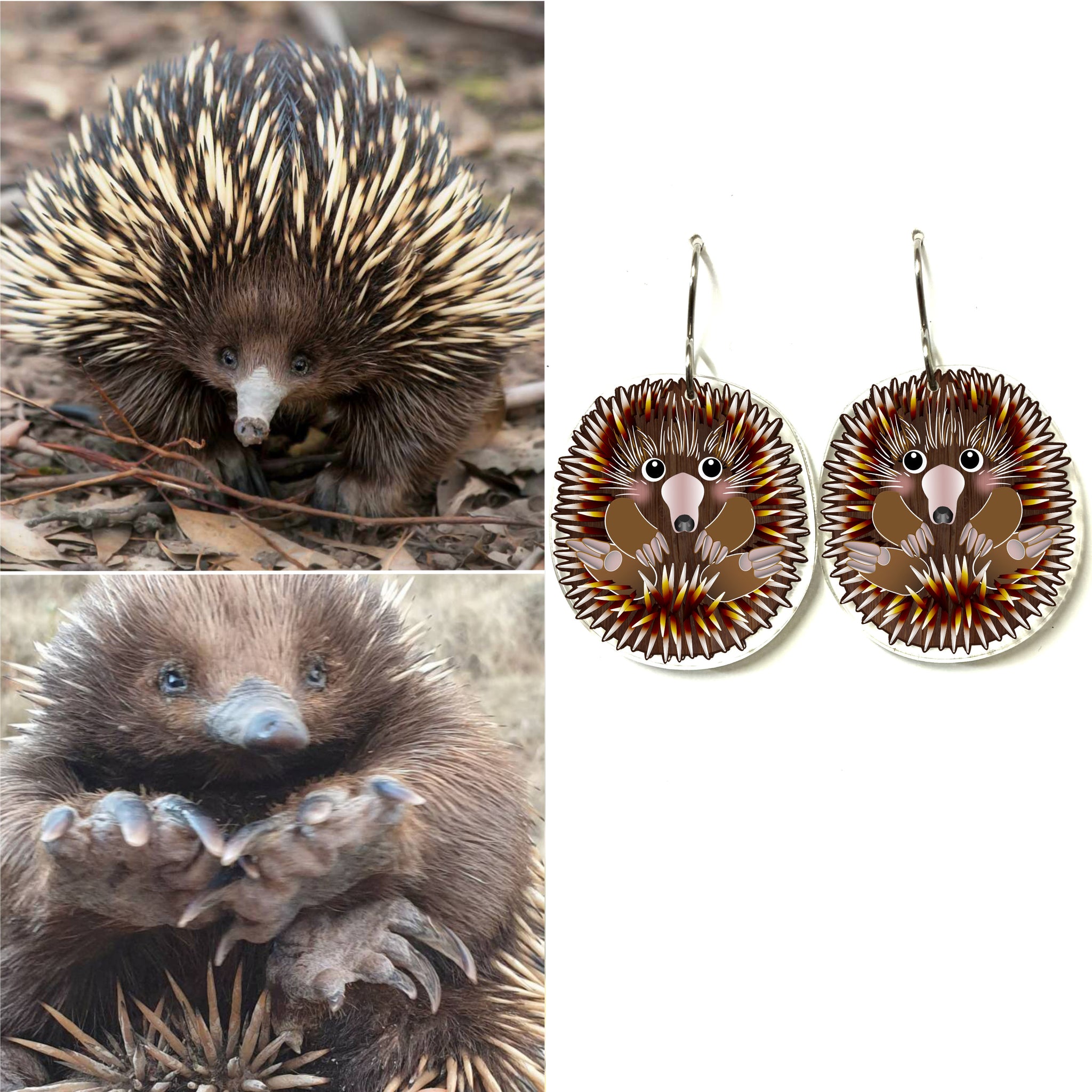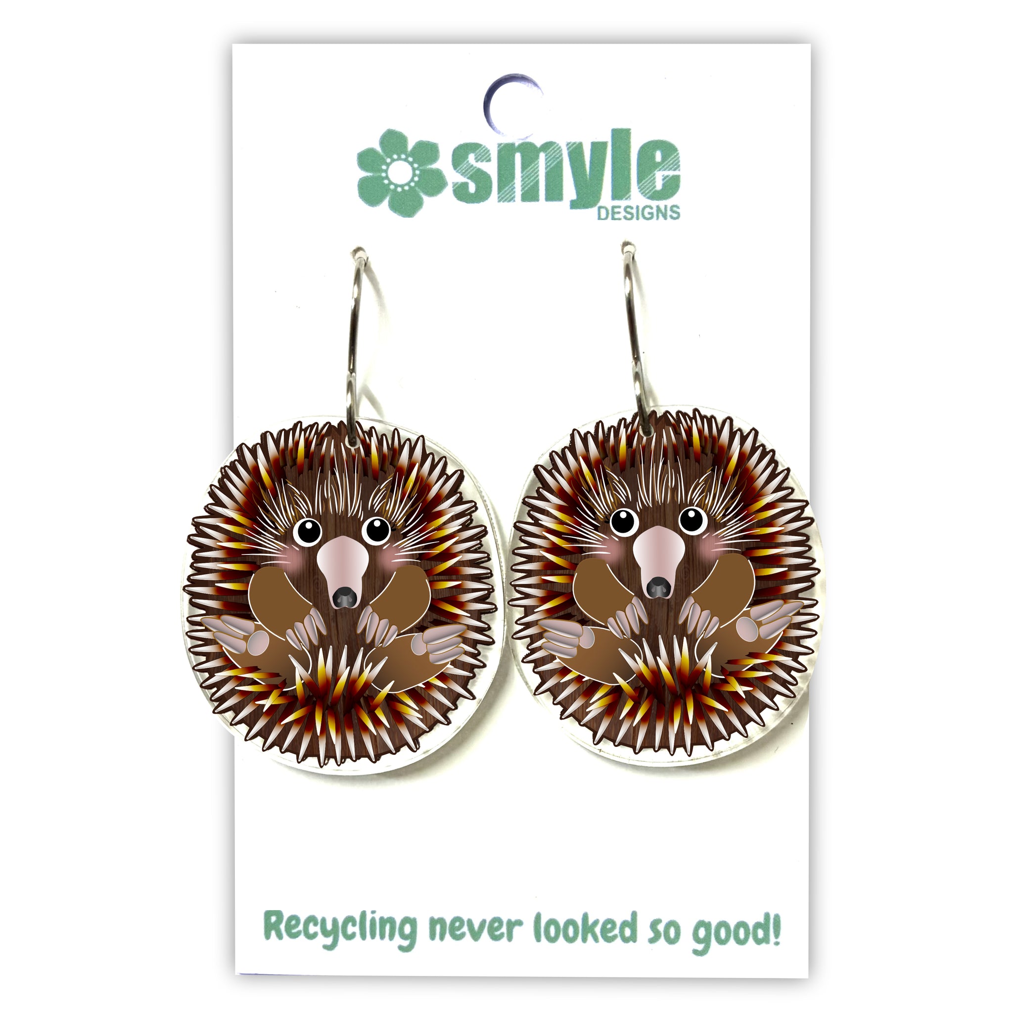 Our Echidna earrings began as an original illustration in our home studio and have been thoughtfully transformed into lightweight earrings using recycled plastics - right here in Brisbane, Australia.