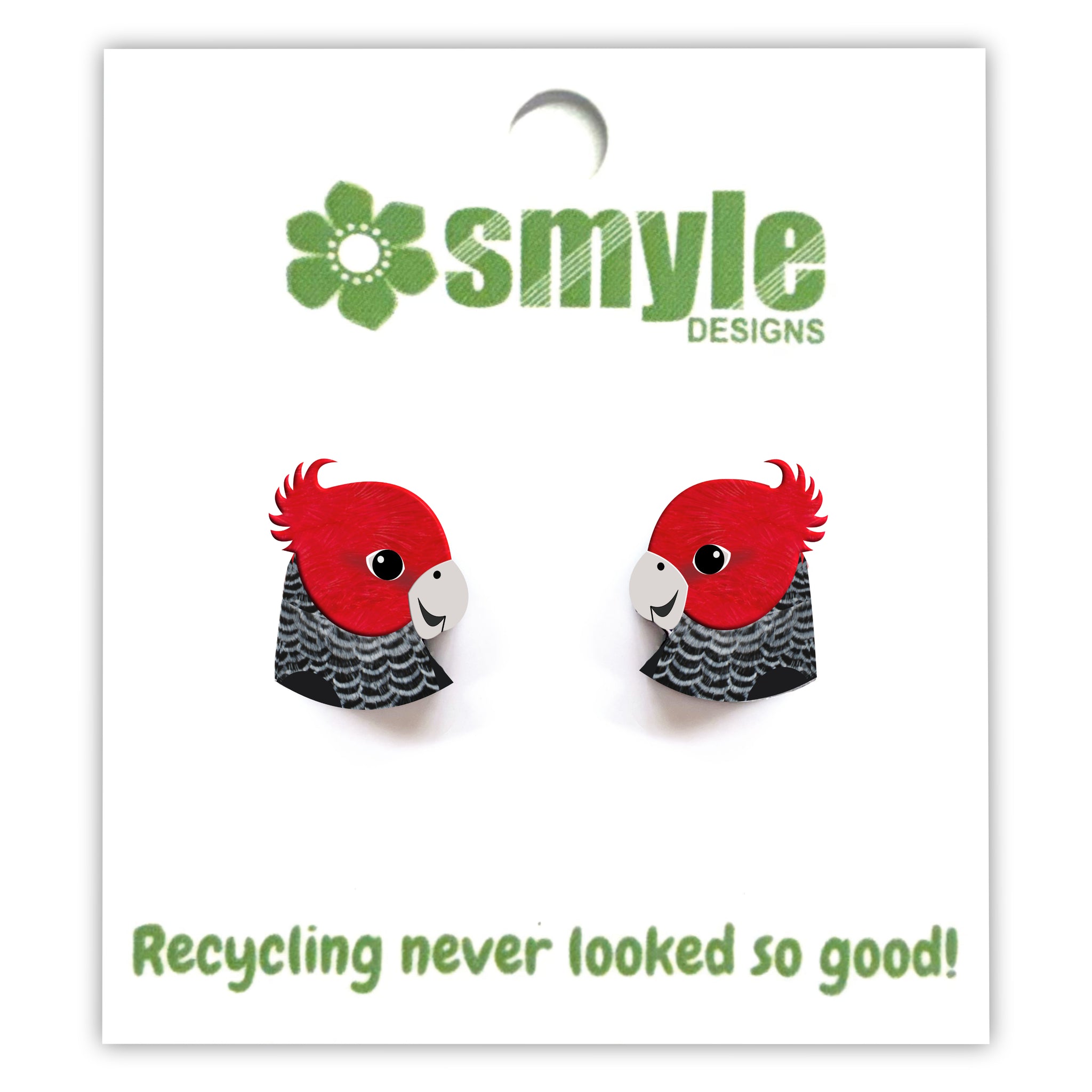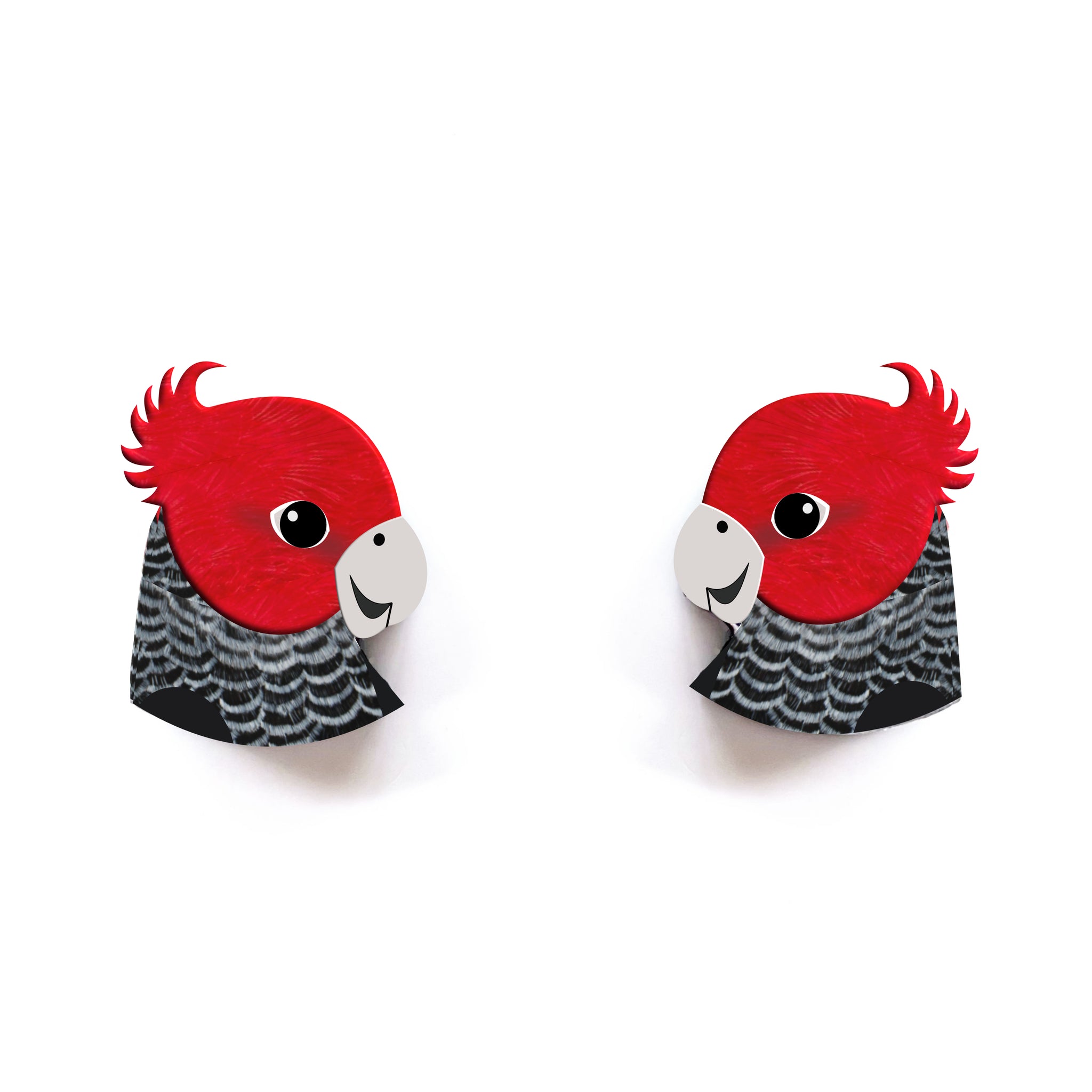 Our Gang Gang Cockatoo earrings began as an original illustration in our home studio and have been thoughtfully transformed into lightweight earrings using recycled plastics - right here in Brisbane, Australia.