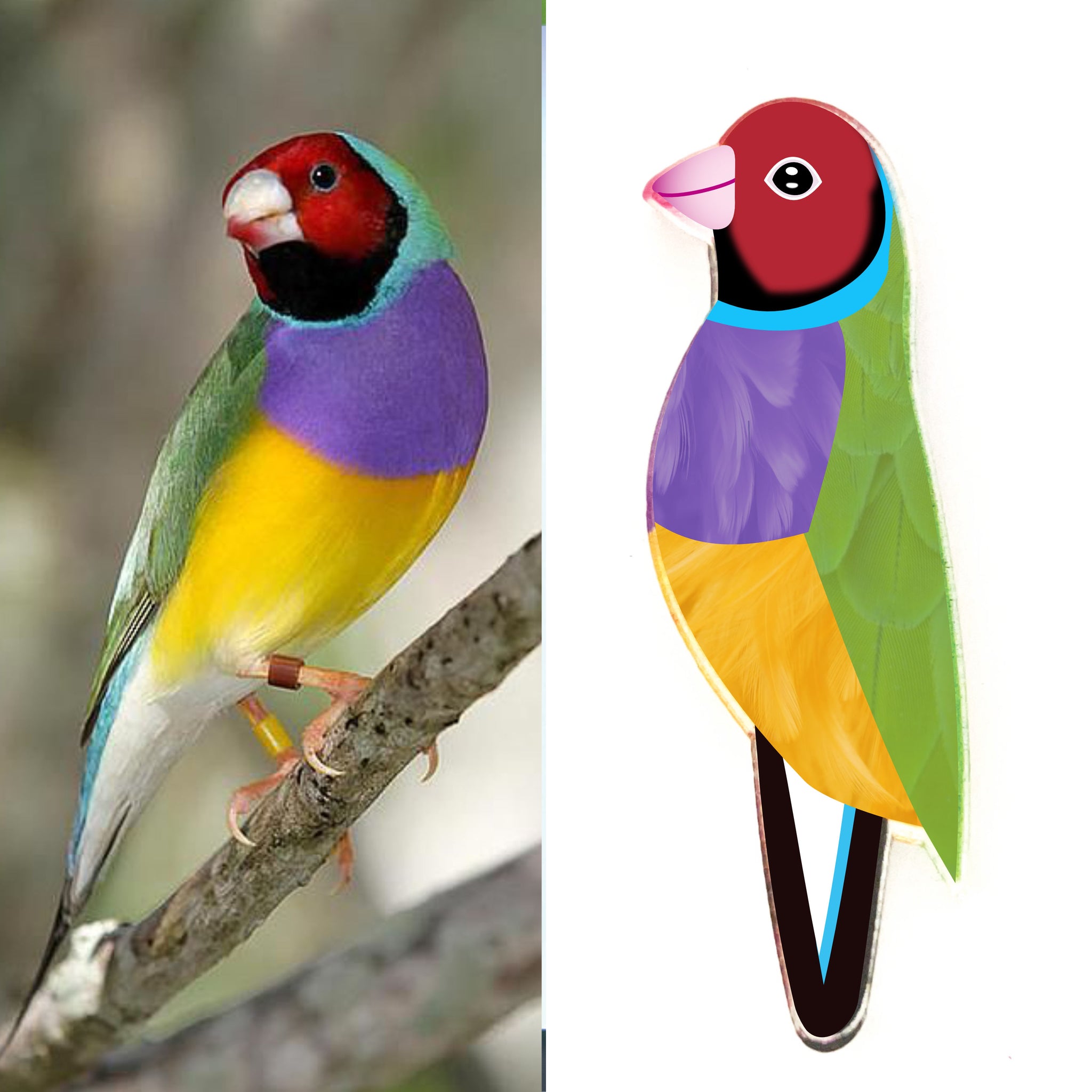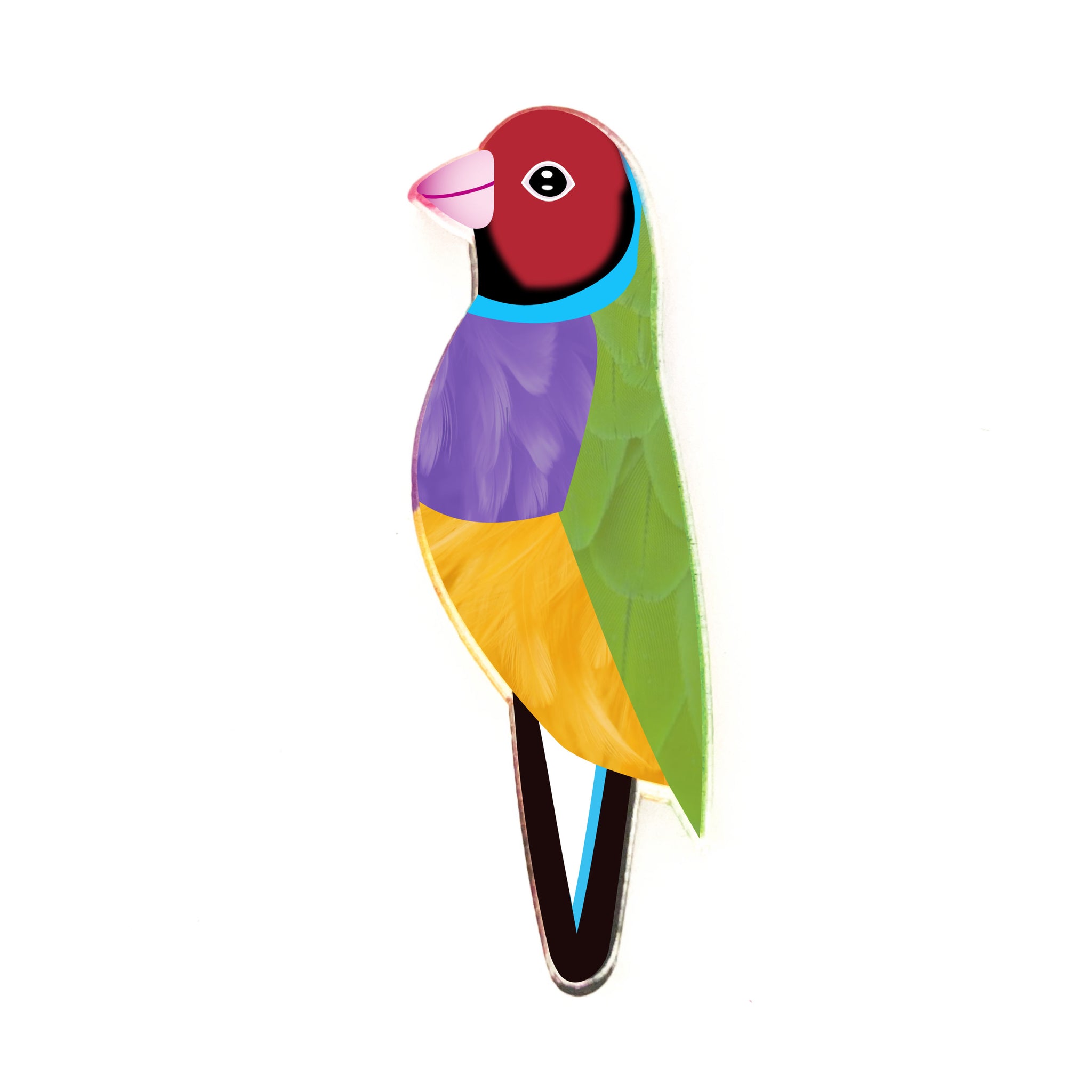 Our Gouldian Finch pins began as an original illustration in our home studio and have been thoughtfully transformed into beautiful pins using recycled plastics - right here in Brisbane, Australia.