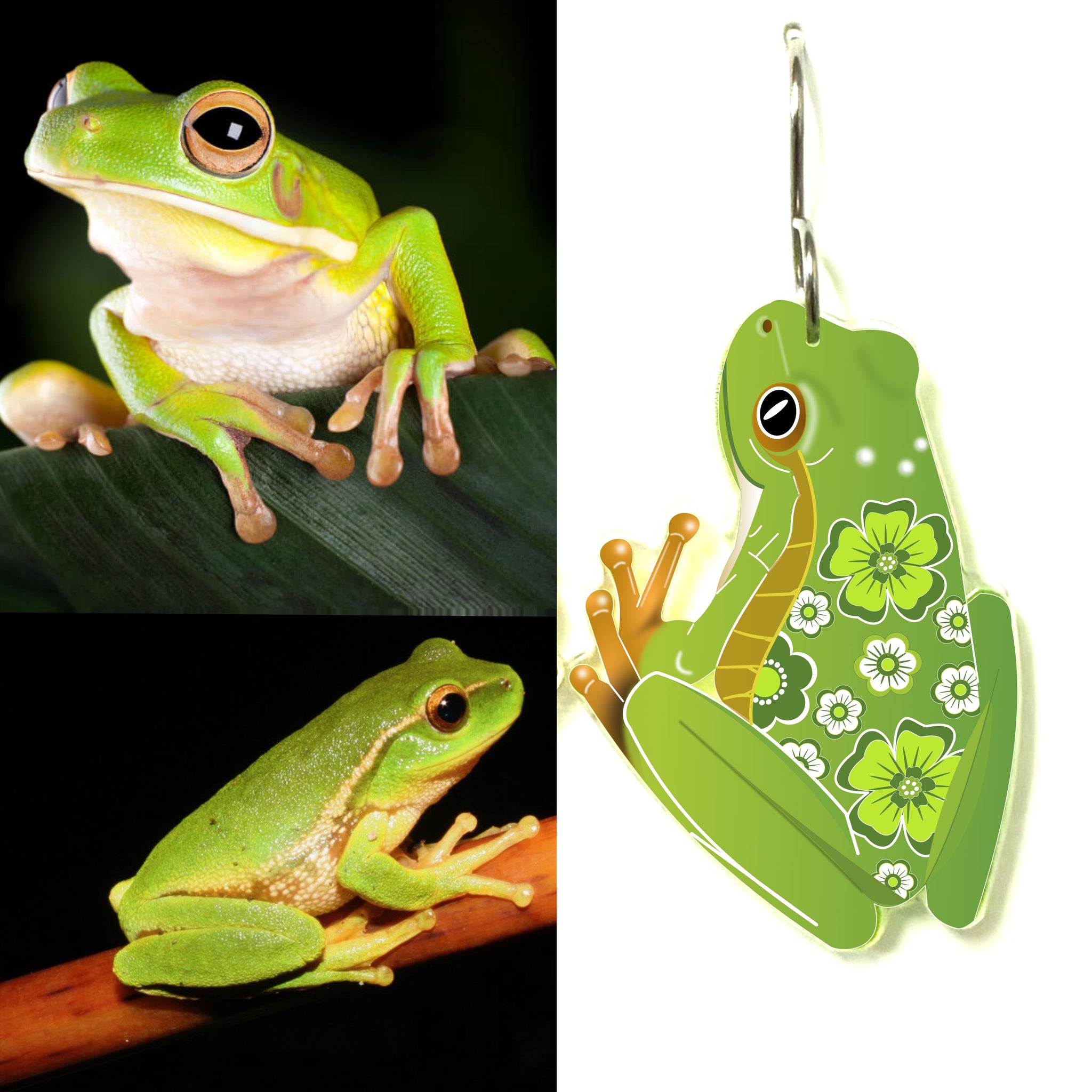 Our Green Tree Frog earrings began as an original illustration in our home studio and have been thoughtfully transformed into lightweight earrings using recycled plastics - right here in Brisbane, Australia.
