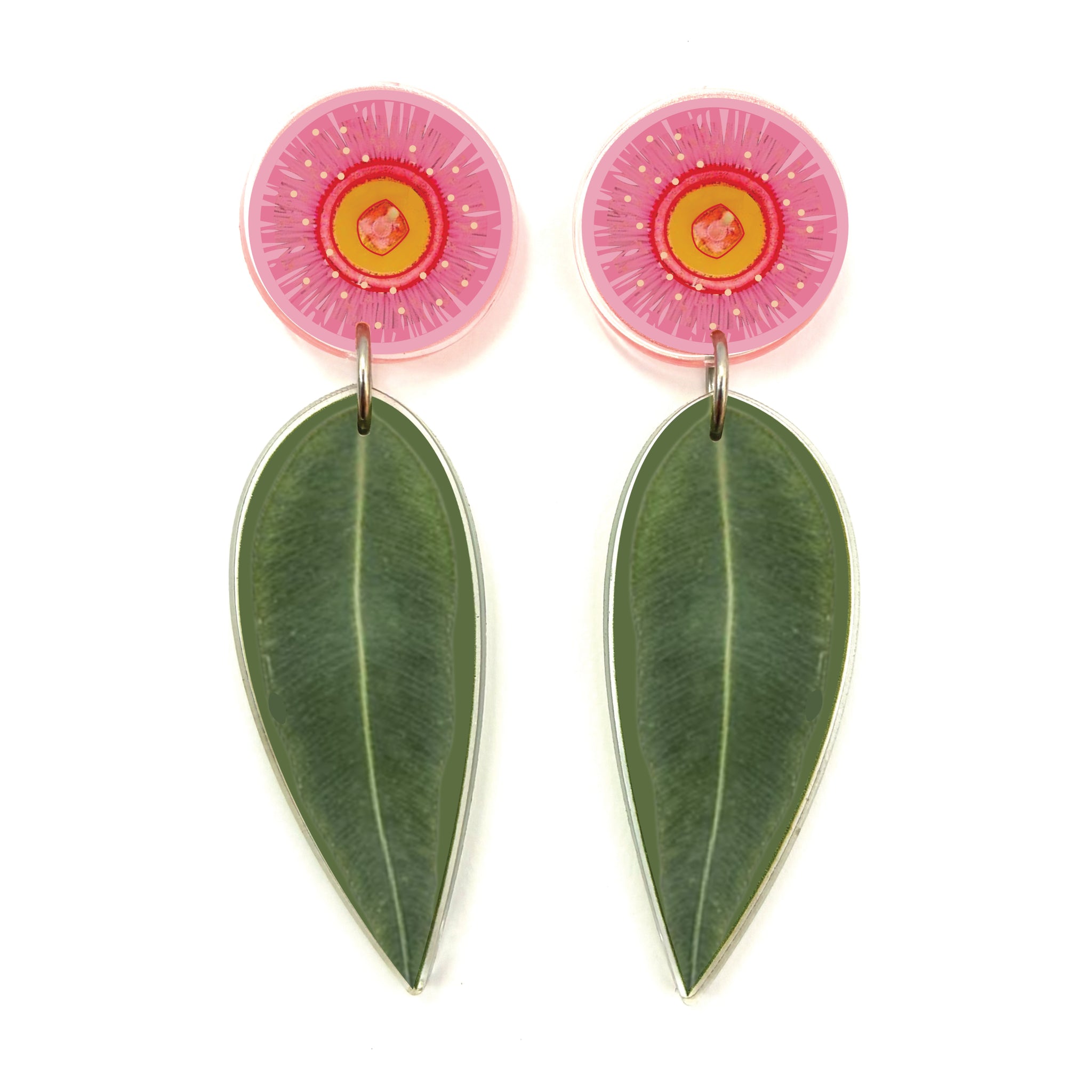 Our Gum Leaf Blossom earrings began as an original illustration in our home studio and have been thoughtfully transformed into lightweight earrings using recycled plastics - right here in Brisbane, Australia.