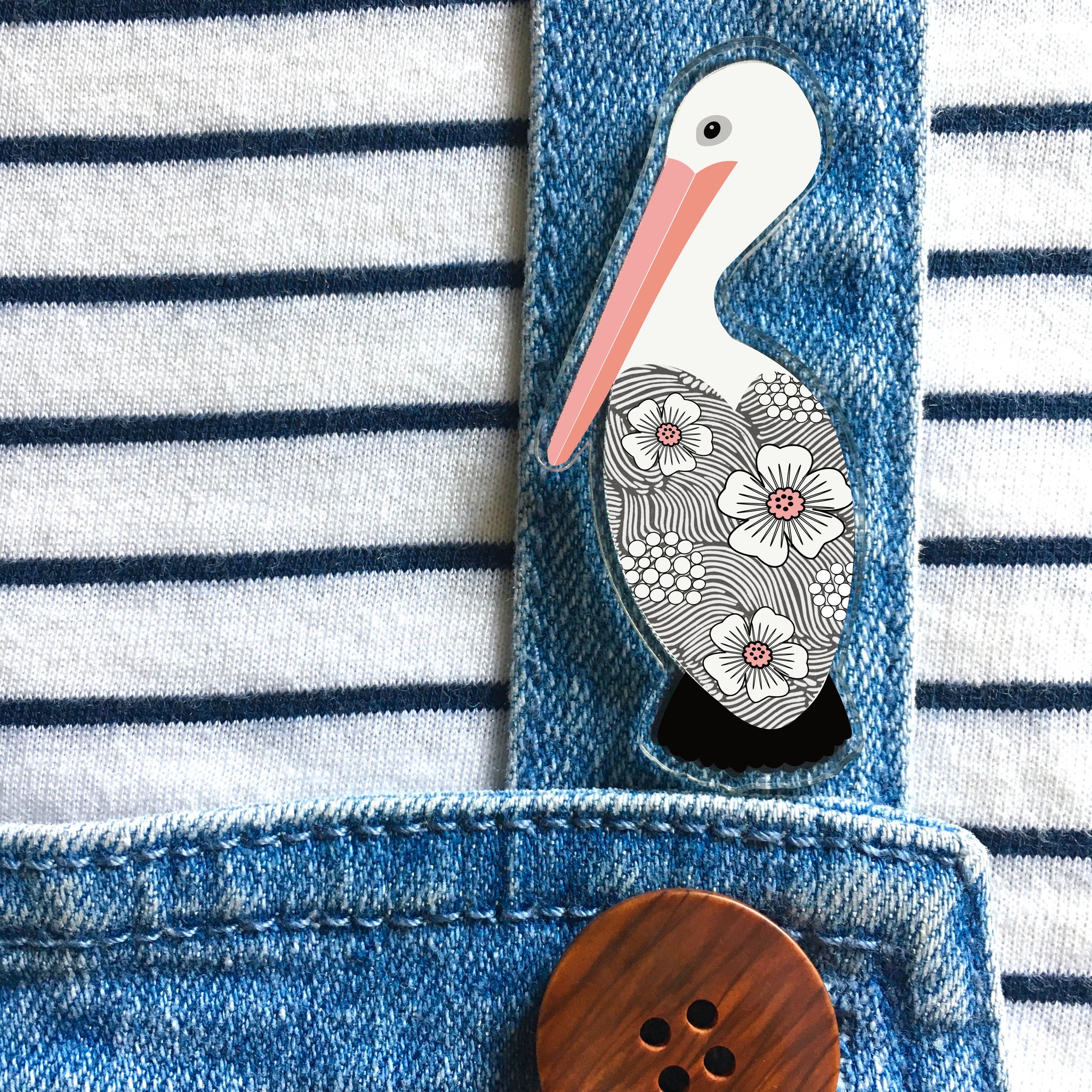 Our art was made into cute little pins, using recycled plastics, right here in Brisbane, Australia.
