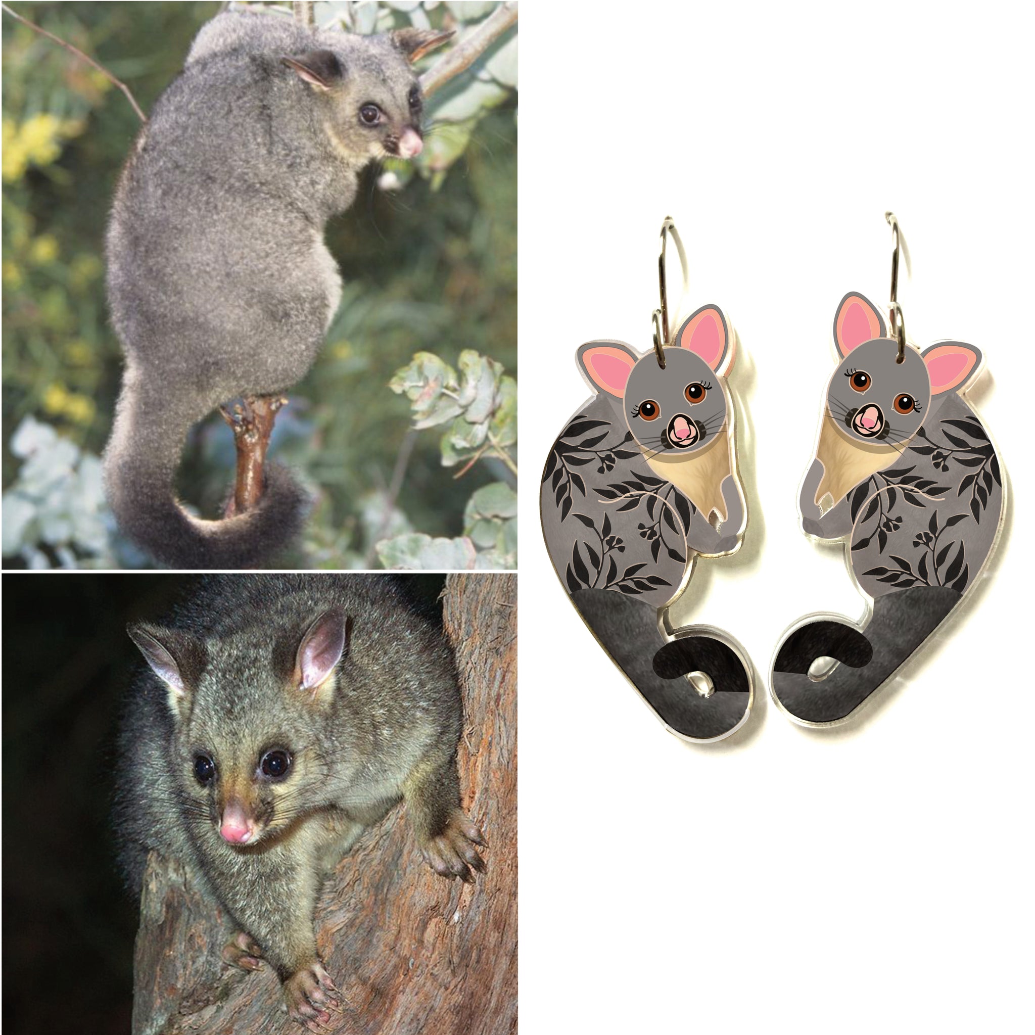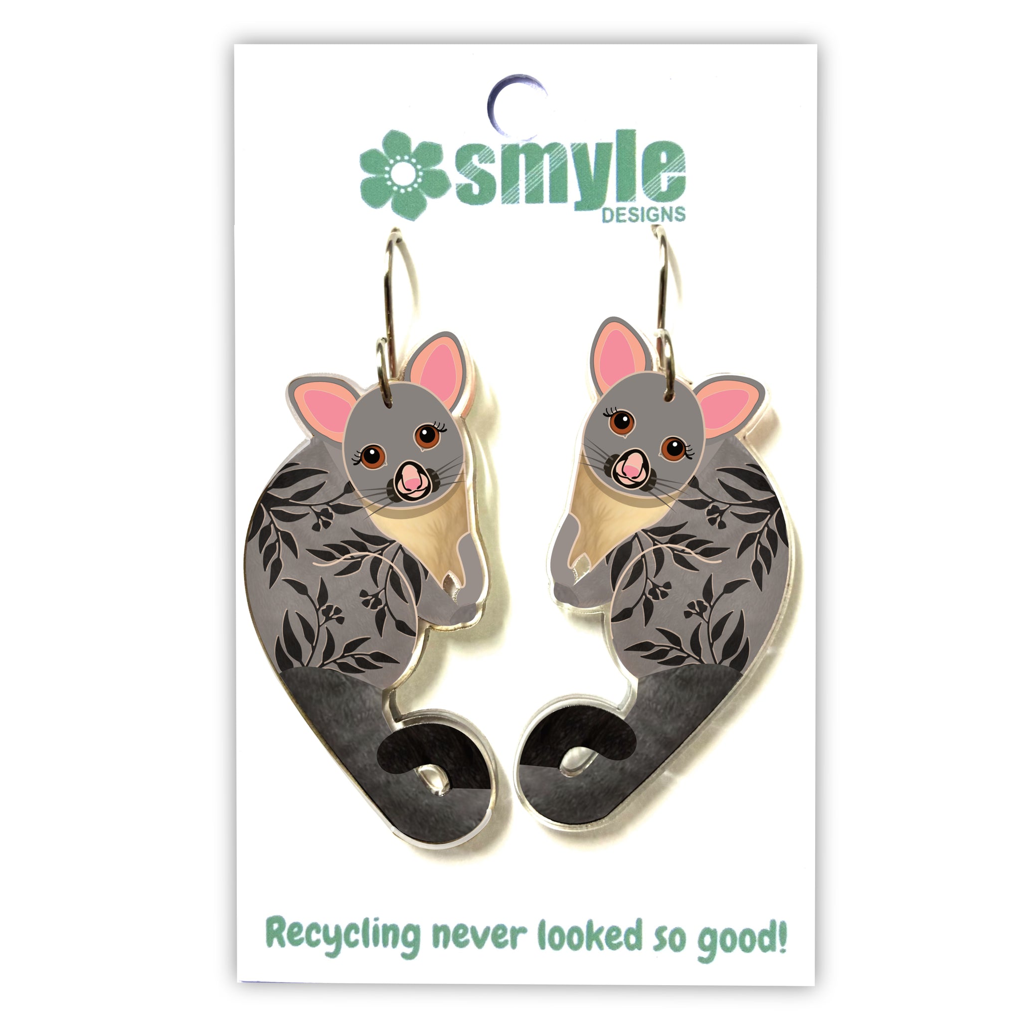 Our Possum earrings began as an original illustration in our home studio and have been thoughtfully transformed into lightweight earrings using recycled plastics - right here in Brisbane, Australia.