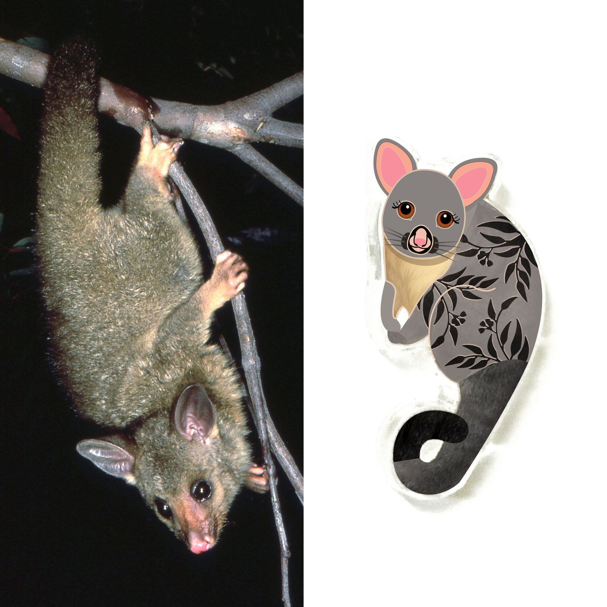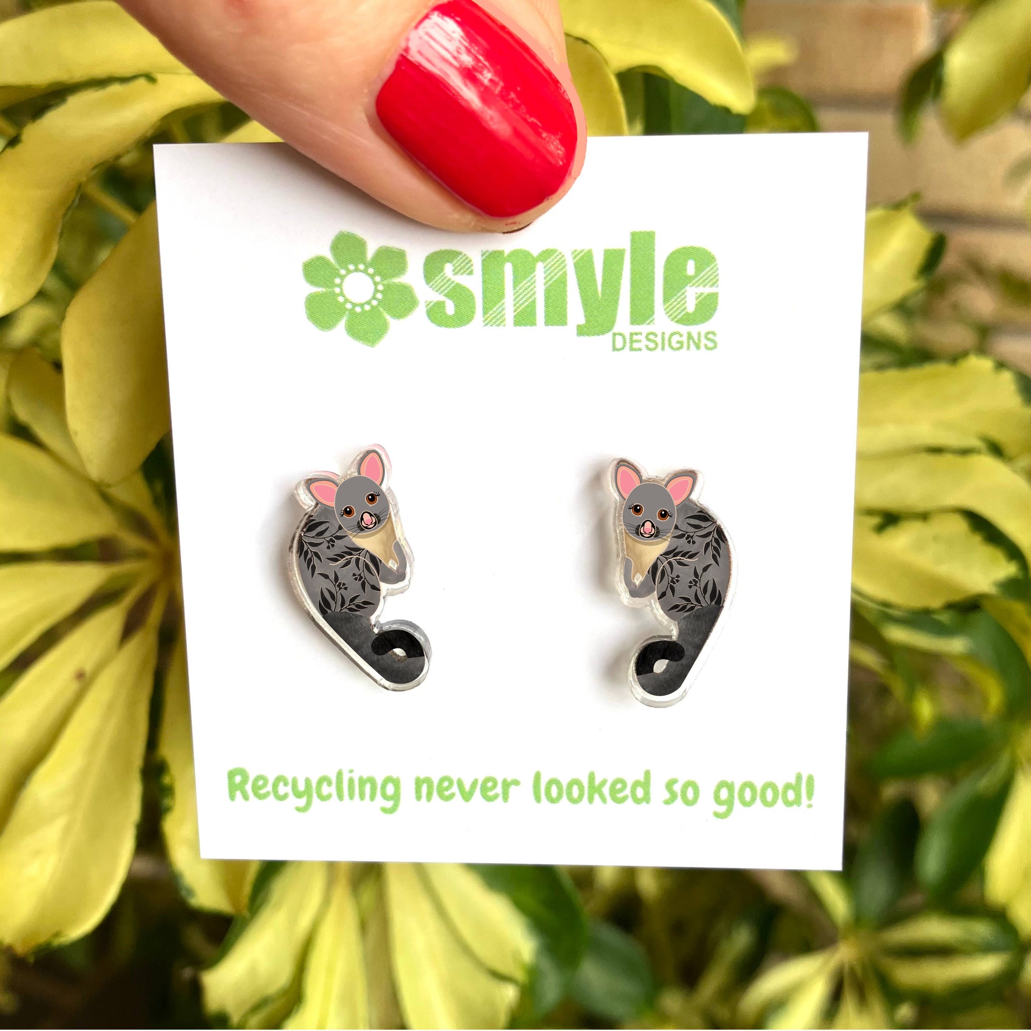 Our Possum earrings began as an original illustration in our home studio and have been thoughtfully transformed into lightweight earrings using recycled plastics - right here in Brisbane, Australia.