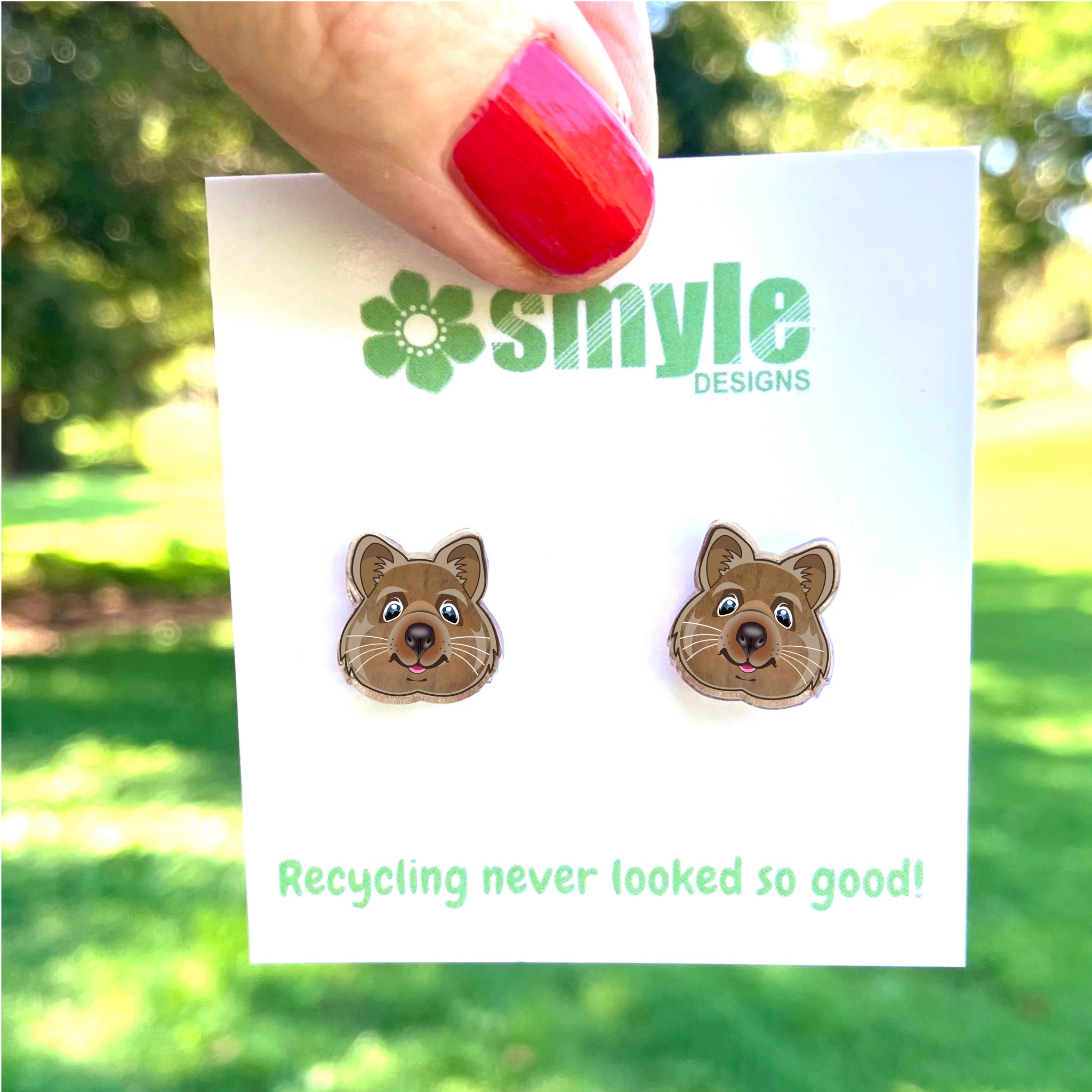 Our Quokka earrings began as an original illustration in our home studio and have been thoughtfully transformed into lightweight earrings using recycled plastics - right here in Brisbane, Australia.