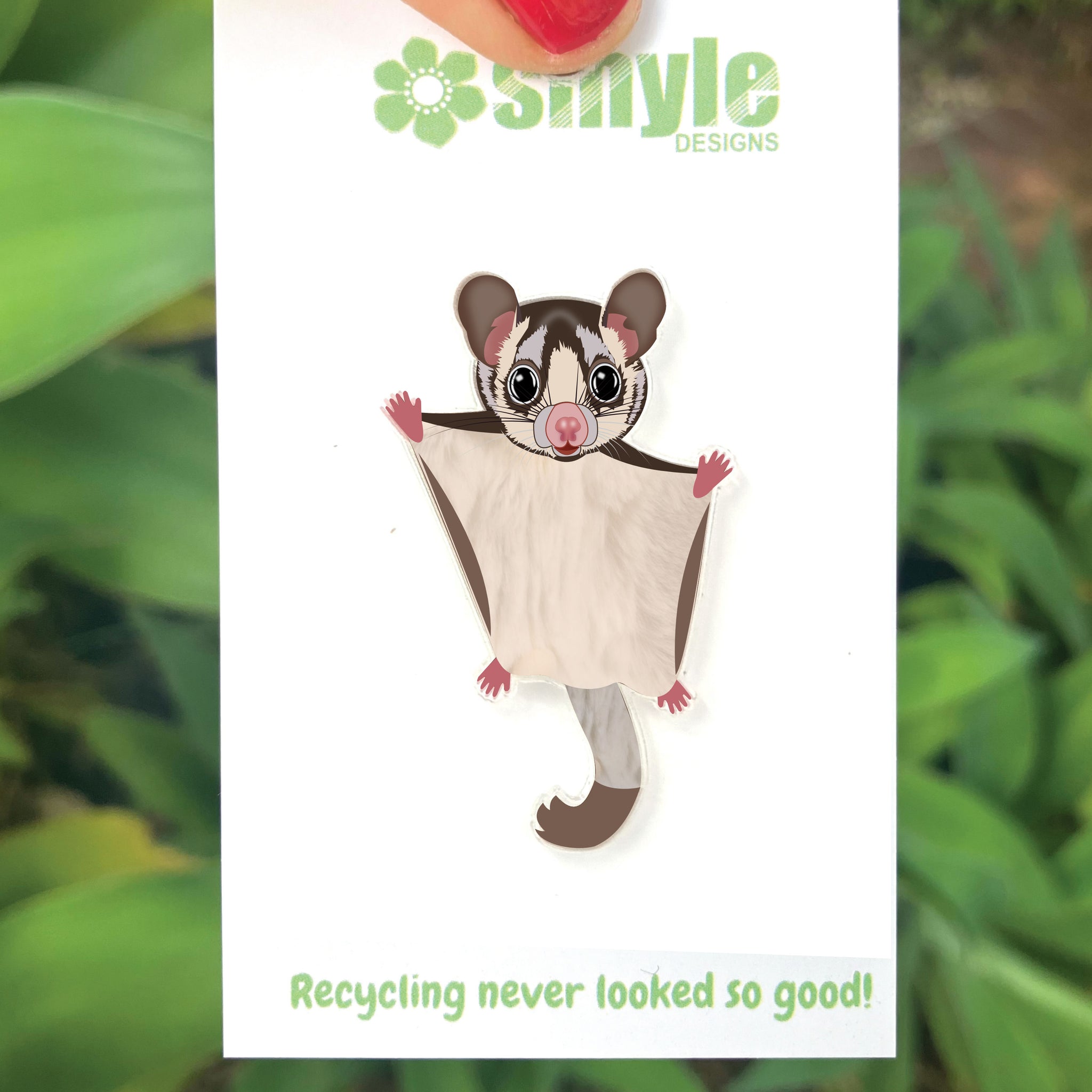 Our Sugar Glider pins began as an original illustration in our home studio and have been thoughtfully transformed into beautiful pins using recycled plastics - right here in Brisbane, Australia.