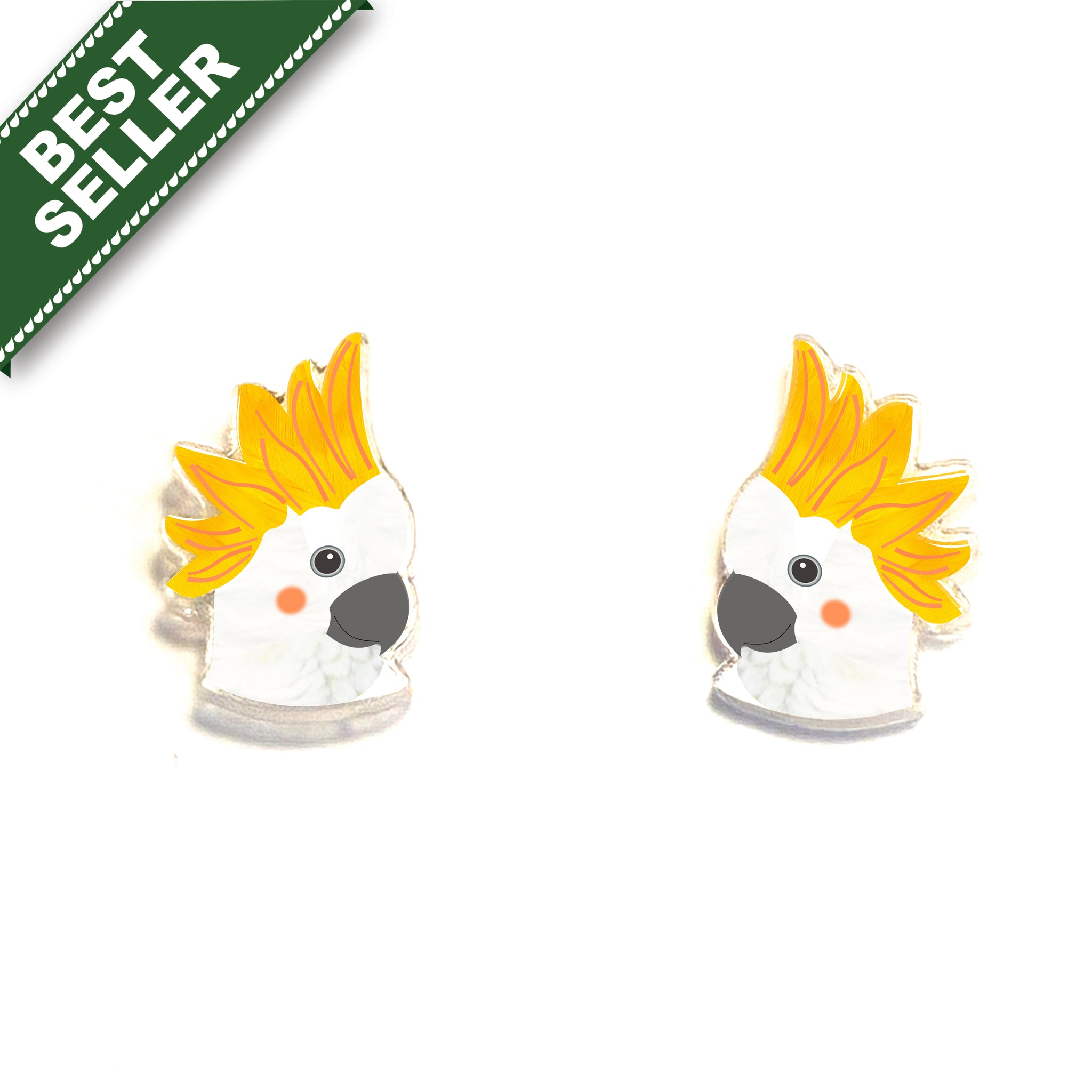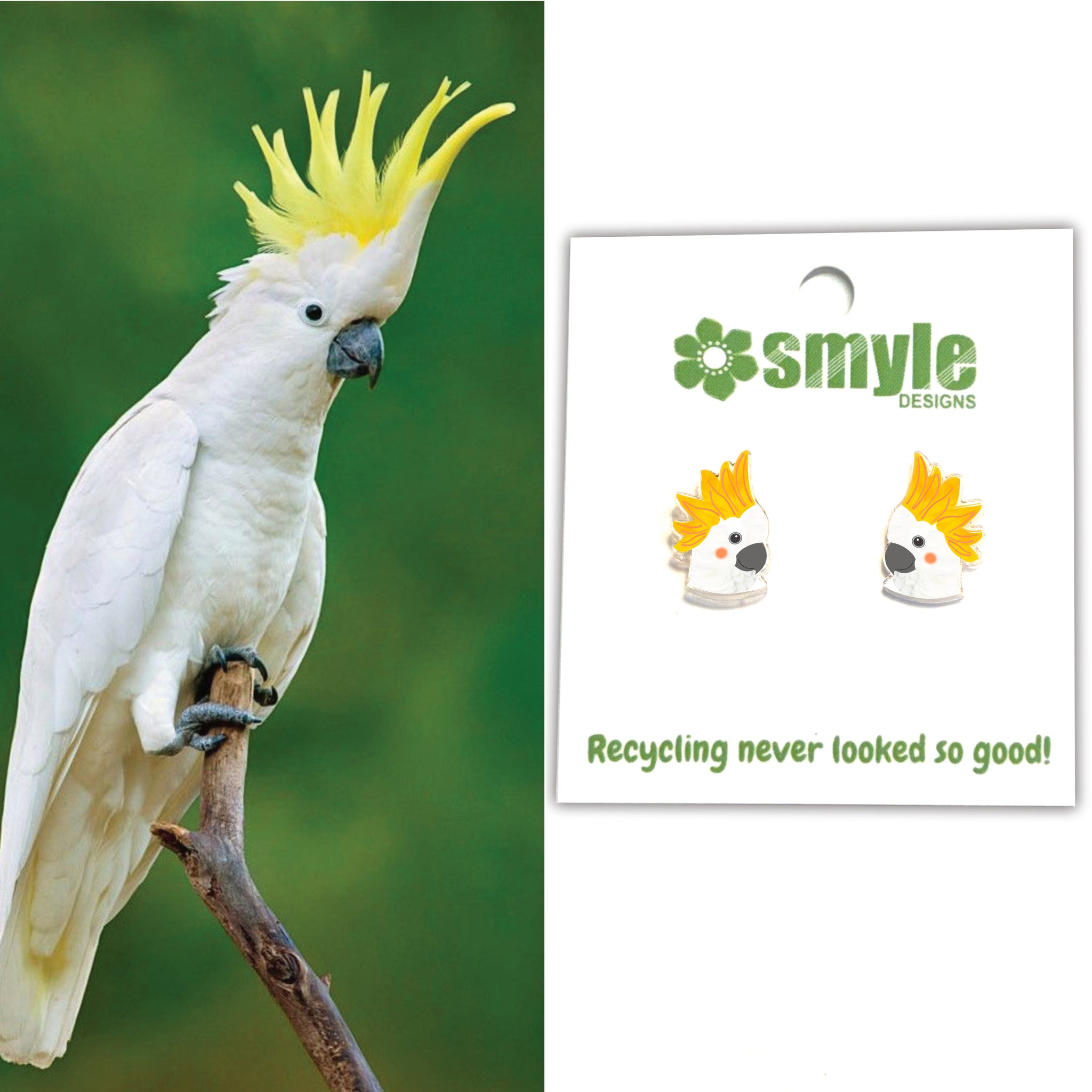 Our Sulphur-Crested Cockatoo earrings began as an original illustration in our home studio and have been thoughtfully transformed into lightweight earrings using recycled plastics - right here in Brisbane, Australia.