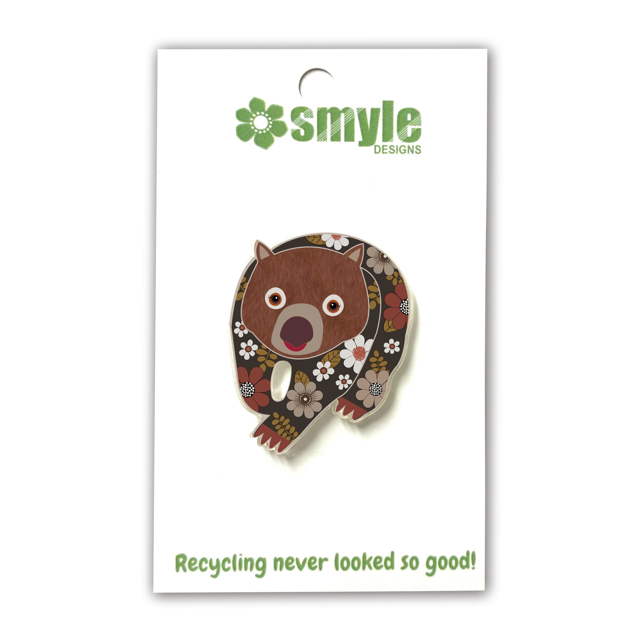 Our Wombat pins began as an original illustration in our home studio and have been thoughtfully transformed into beautiful pins using recycled plastics - right here in Brisbane, Australia.