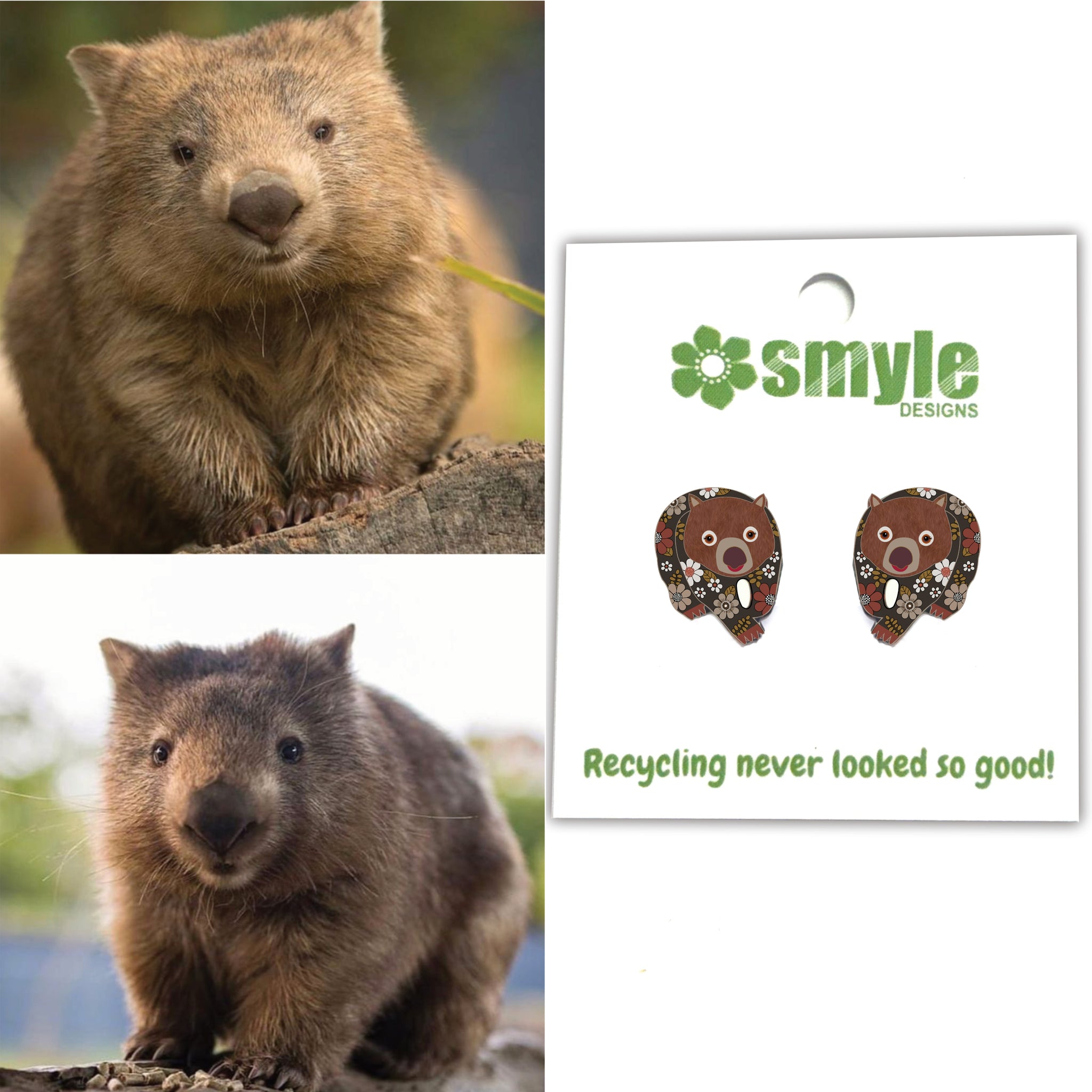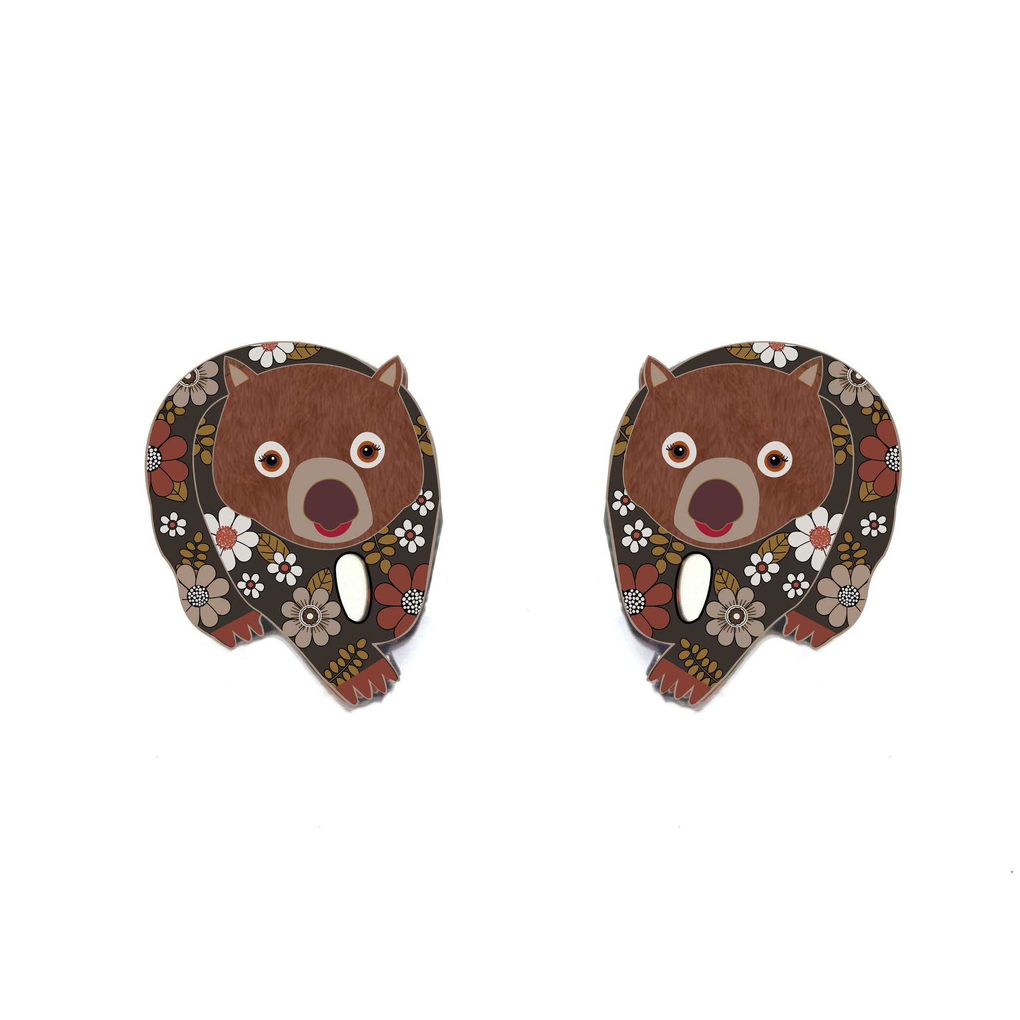 Our Wombat earrings began as an original illustration in our home studio and have been thoughtfully transformed into lightweight earrings using recycled plastics - right here in Brisbane, Australia.